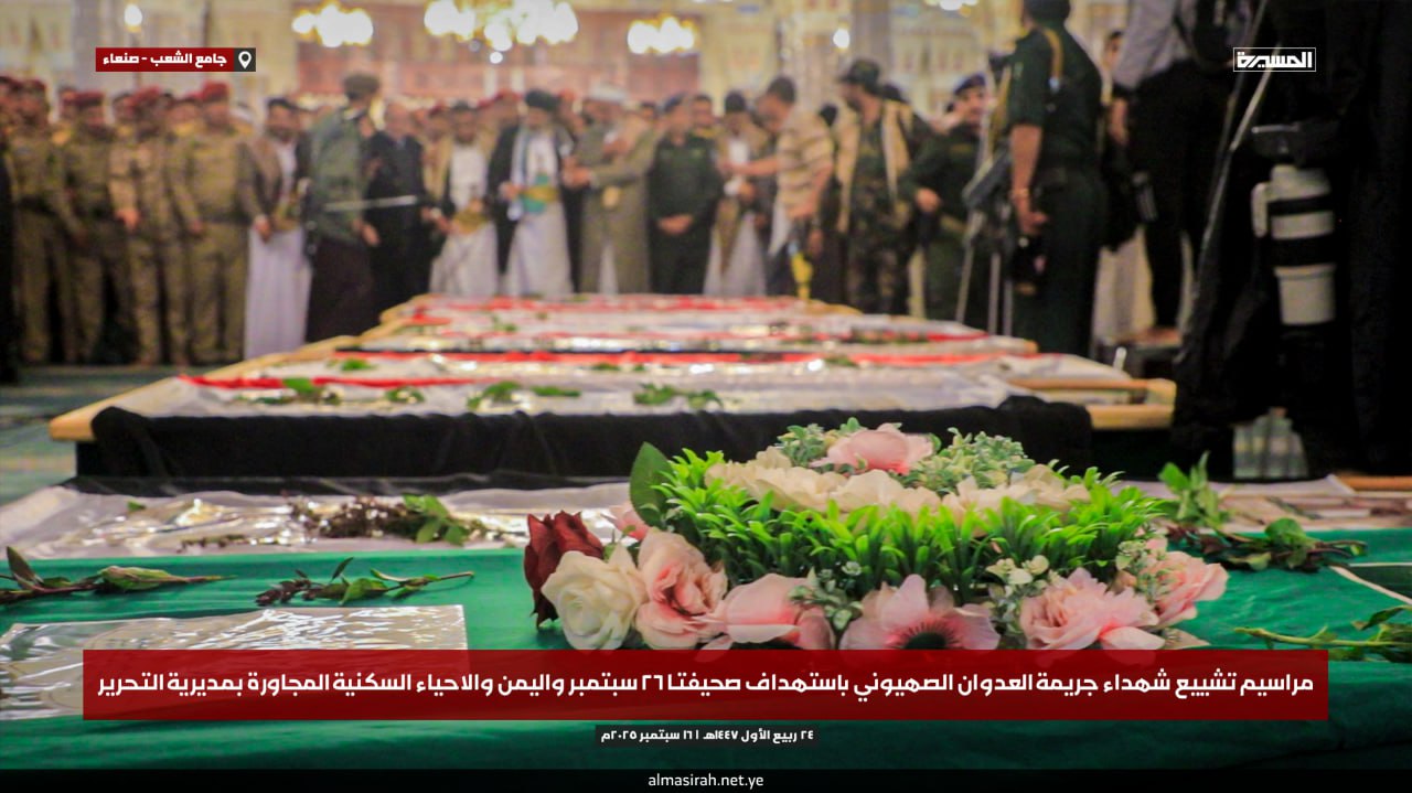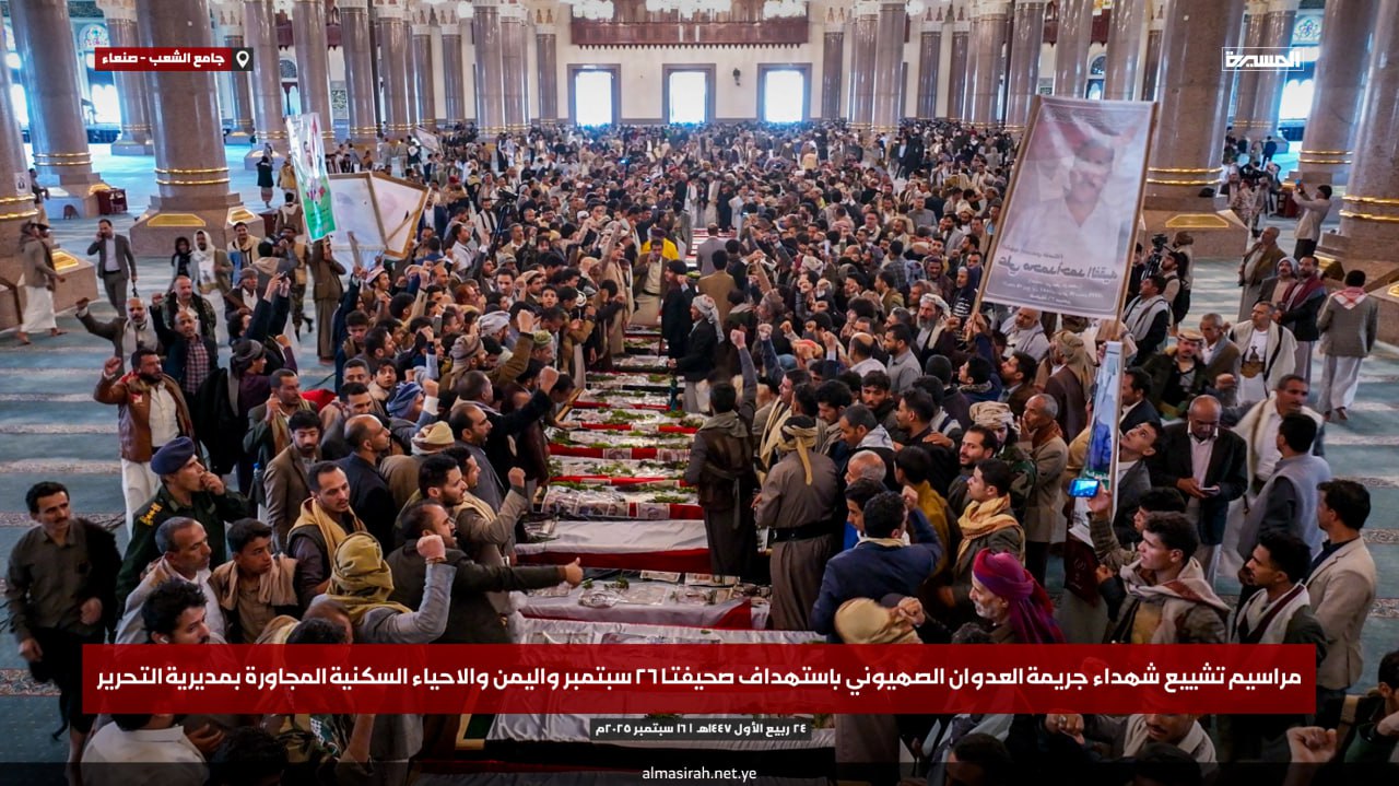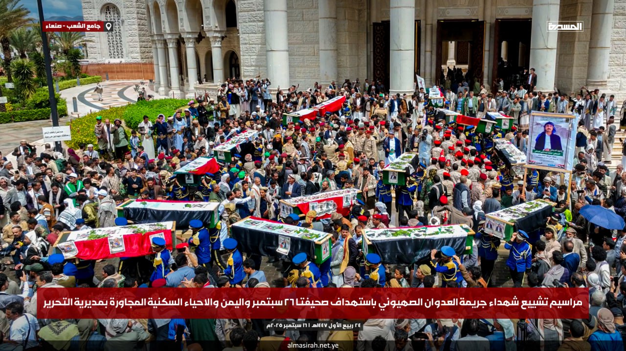 حيث ودّعت اليمن اليوم الثلاثاء، الصحفيين من منتسبي صحيفتي 26 سبتمبر واليمن الذين ارتقوا شهداء في عدوان إجرامي، يعد الأكبر بحق الصحافة والصحفيين في اليمن.