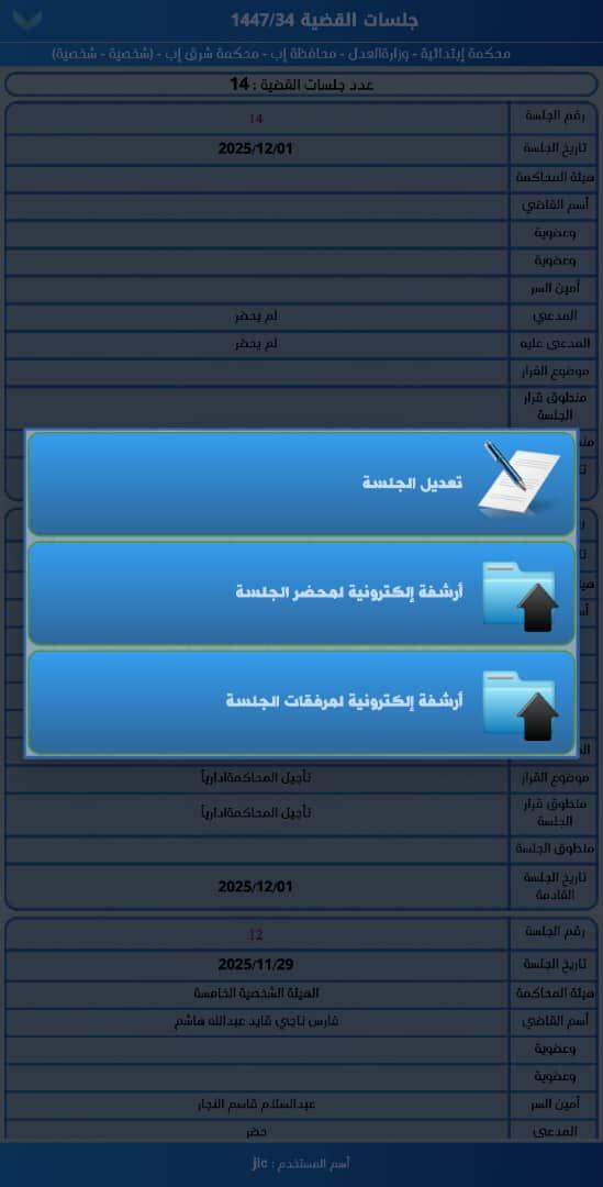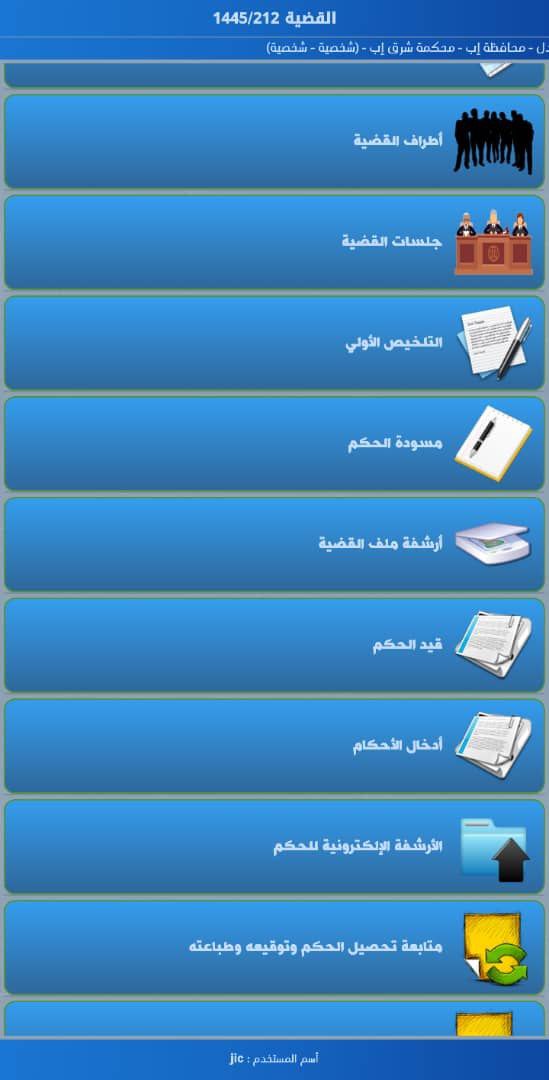 ويتيح التطبيق للمسؤولين – وفق اختصاصاتهم القانونية والإدارية – اختيار المحافظات والمحاكم التابعة لها، وإنشاء القضايا، والاطلاع على الجلسات اليومية، والبحث في ملفات القضايا، وإصدار التقارير، وإجراء الأرشفة الإلكترونية لمحاضر الجلسات، وتحصيل ملف القضية أولا بأول.