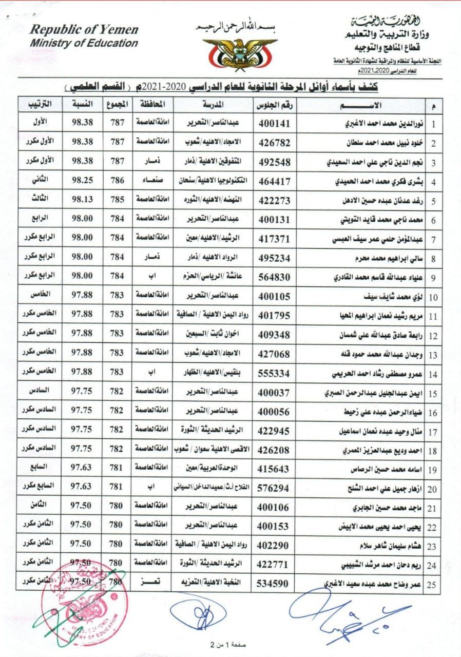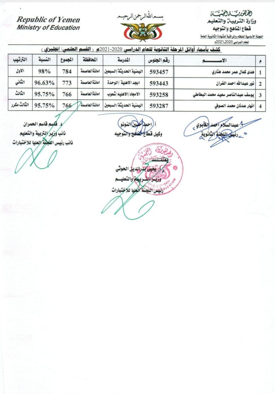 26 سبتمبر نت تعيد نشر أسماء اوائل الثانوية