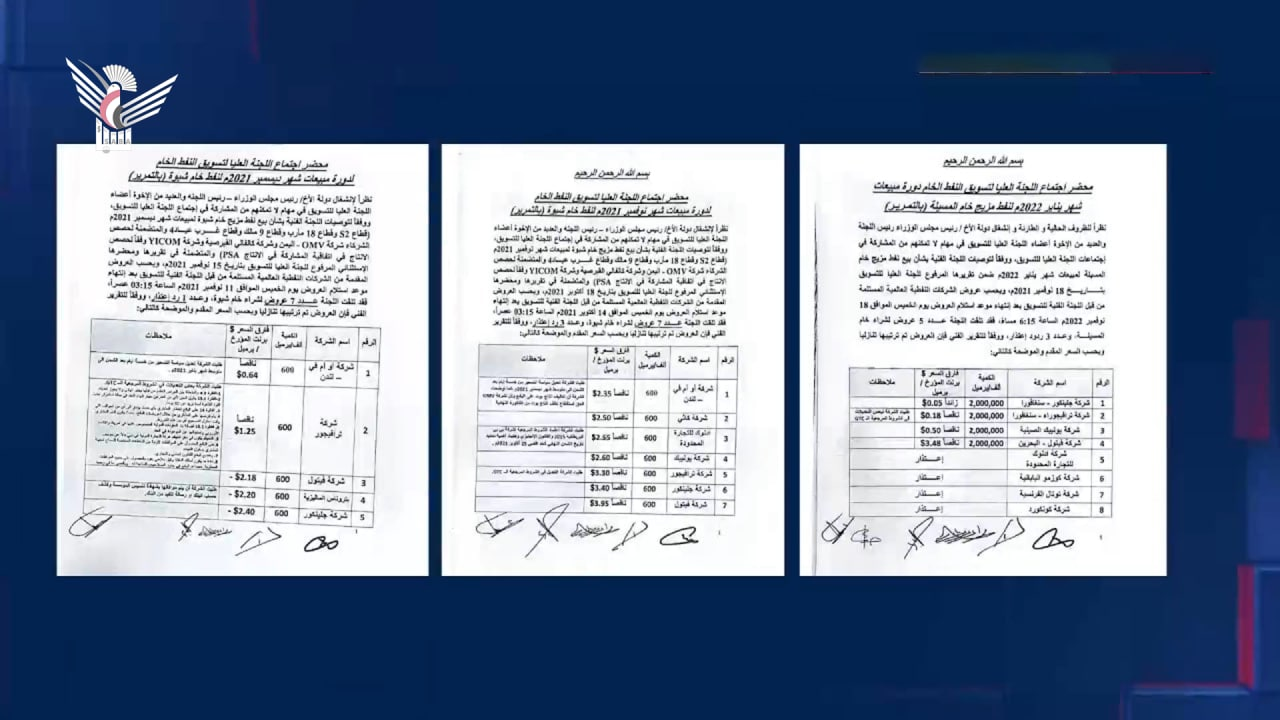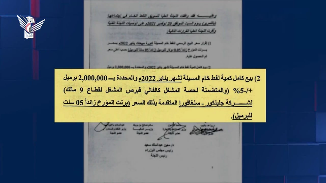 وتضمنت الوثائق، محاضر ومناقصات لبيع النفط الخام المنهوب من حقول المسيلة وشبوة ومأرب لعدد من الشركات الأجنبية، عبر ما تسمى "اللجنة العليا لتسويق النفط الخام" التابعة للمرتزقة.