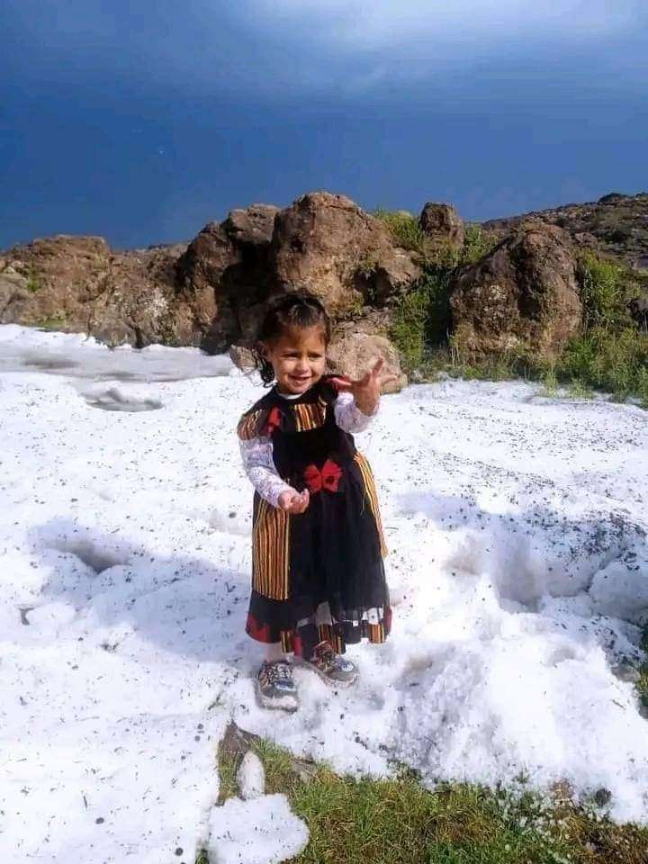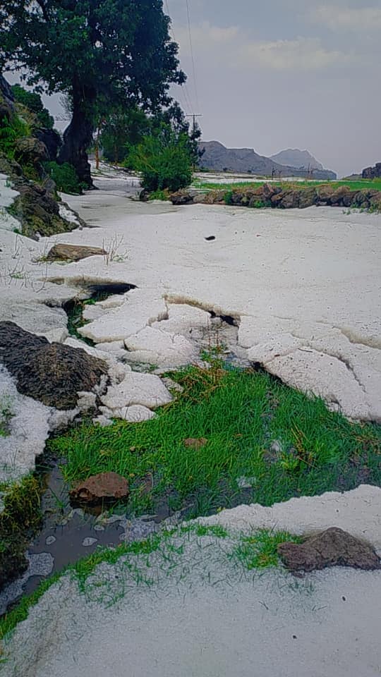 ولاقت هذه الصور انتشارا على مواقع التواصل الاجتماعي توضح انها ليست ثلوج تساقطت لكنها زخات من البرد المصاحب للأمطار الرعدية والتي شكلت لوحة جمالية خلابة