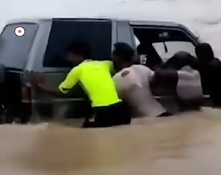 وتداول الناشطون مقاطع تظهر مواطنين يعملون جاهدين على إنقاذ مركبة من الغرق في سقطرى، حيث تشهد الجزيرة تأثيرات قوية نتيجة إعصار تيج.