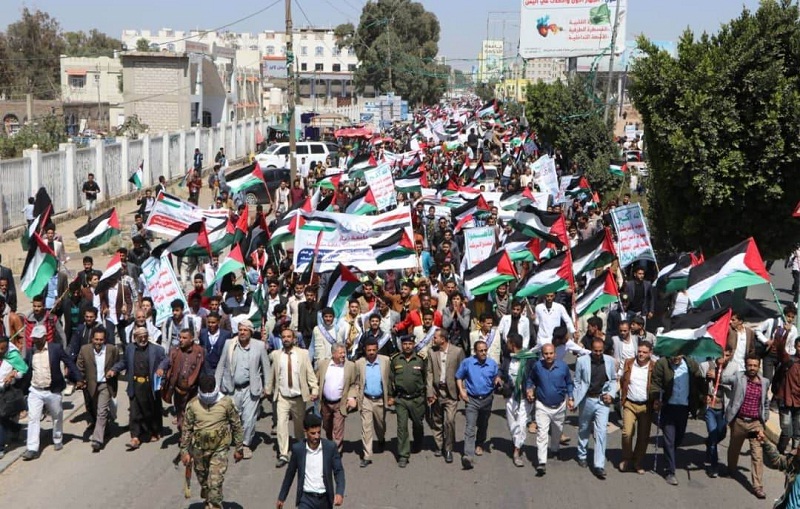 واعتبر المشاركون في المسيره القضية الفلسطينية القضية المركزية للأمة العربية والإسلامية والدفاع عن المقدسات ونصرة المجاهدين في فلسطين واجب ديني على كل مسلم.