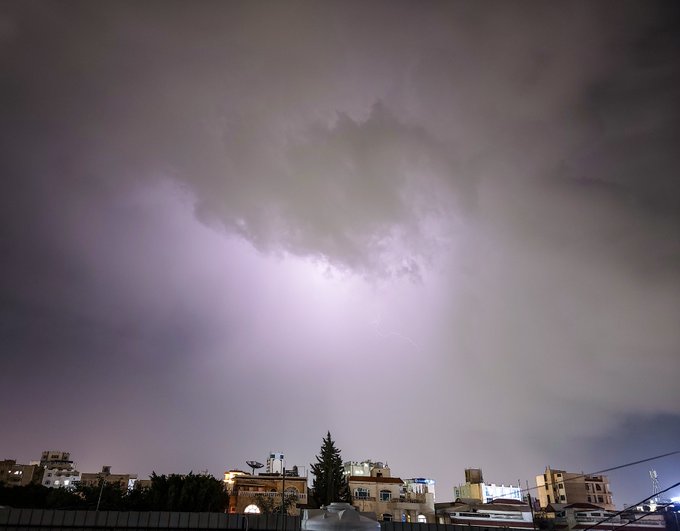 امطار غزيرة مصحوبة بالبرد ! وسط العاصمة صنعاء
