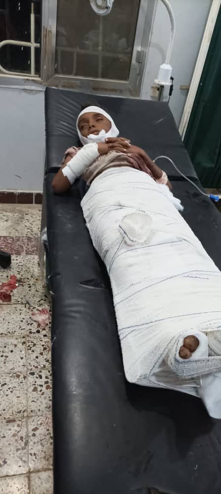 وأوضح مصدر أمني بالمحافظة أن خمسة مواطنين أصيبوا بينهم طفل إصابته بليغة إثر قذيفة ألقتها طائرة مسيرة لمرتزقة العدوان في منطقة أخدوع أسفل بمديرية مقبنة.