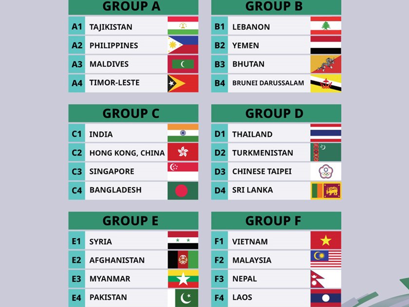 - المجموعة السادسة: فيتنام، ماليزيا، نيبال، لاوس.